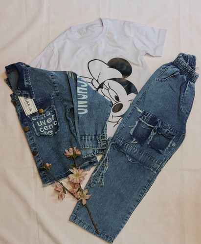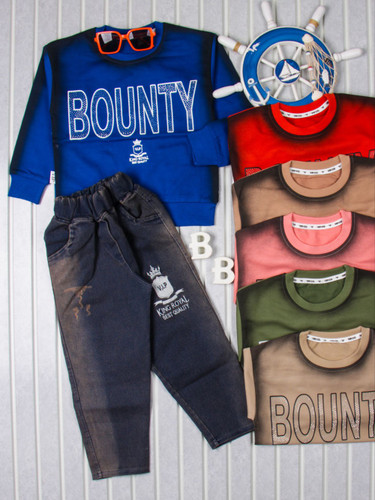 ست بلوز پنبه با شلوار لی سنگشور اسپرت مناسب ست دختر پسر دو سال تا 8 سال