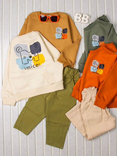 ست بلوز پنبه با شلوار کتان پشت چاپ M مناسب برای دختر و پسر سایز بندی از 1 سال تا سه سال