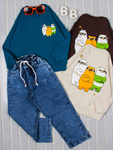 ست بلوز پنبه شلوار لی گرم بالا پشت چاپ سه خرس اسپورت سایز یک سال تا سه سال