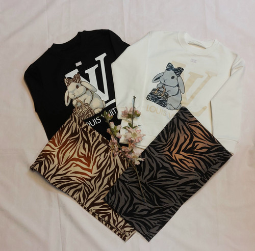 ست بلوز پنبه طرح خرگوش دخترانه با شلوار کتان پلنگی مناسب برای 4 سال تا 12 سال