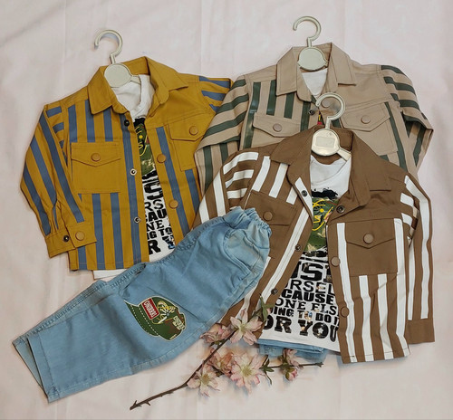 ست سه تیکه کت راه راه کتان و شلوار لی مناسب برای دو سال تا هفت سال