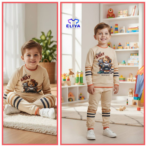 بلوز شلوار پسرانه طرح خرس و تاج مناسب برای یک سال تاپنج سال