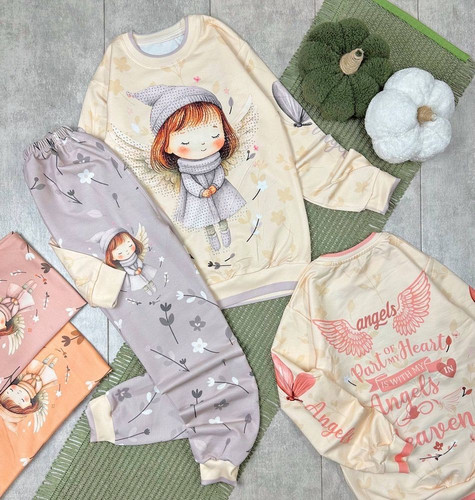 ست بلوز و شلوار دخترانه سابلیمیشن طرح دختر و کلاه سایز 8 تا 12 سال