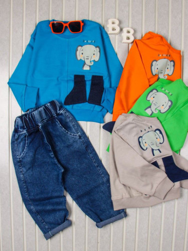 بلوز پنبه طرح فیل پا دراز با شلوار لی مناسب برای یک سال تا سه سال